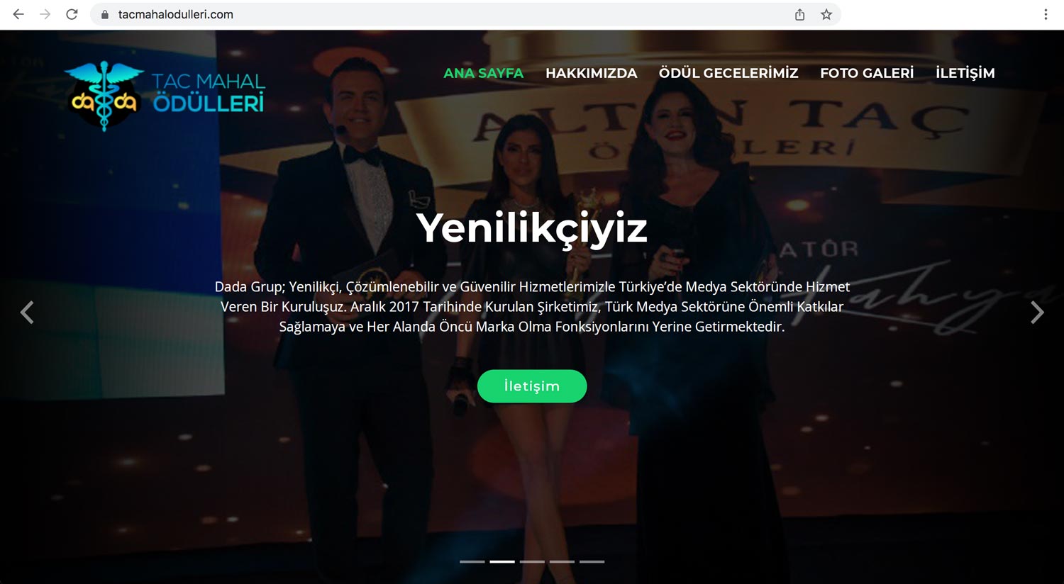 Tac Mahal Ödülleri‘nin Resmi Web Site Tasarımı Ebru Aydın Interactive Tarafından Yapılmıştır. Çalışmalarımız İçerik Optimizasyonları, SEO ve Diğer Dijital Çalışmalar ile Devam Ediyor.